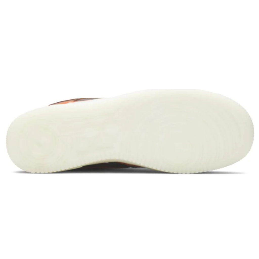 O Air Force 1 Orange Skeleton Halloween apresenta uma base de couro laranja, completa com uma língua e cadarços tom sobre tom. Assim como seus colegas, o design de Bruce Kilgore embelezou seu par com uma ilustração de um raio-x do pé humano.